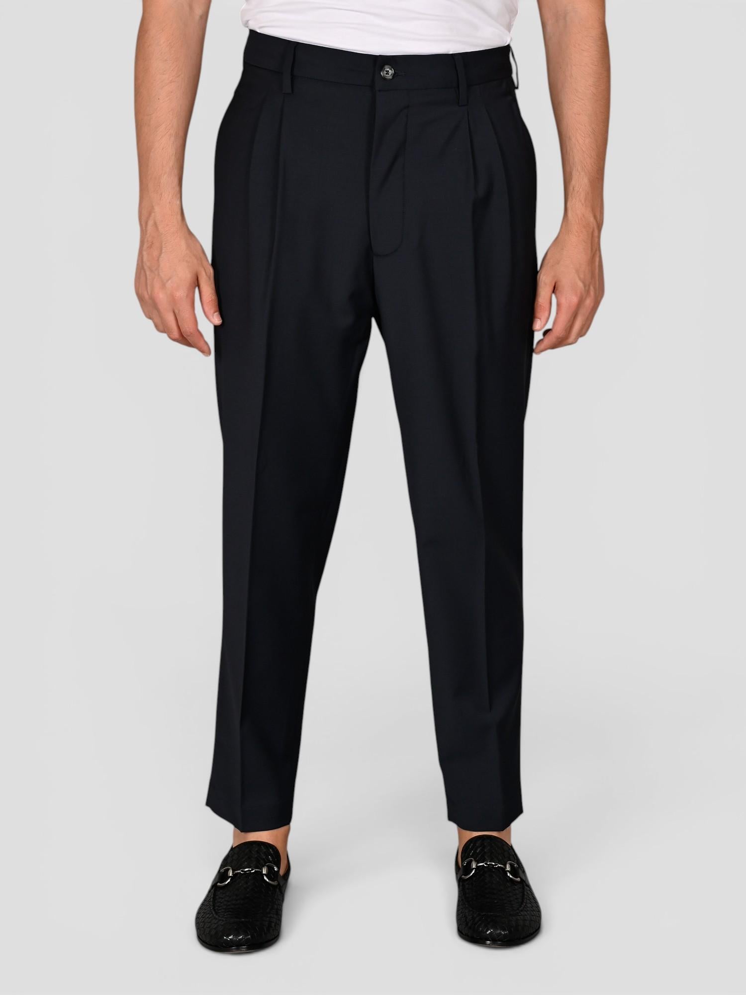 Pantalone dal taglio sartoriale contemporaneo, caratterizzato da una linea pulita ed elegante. La doppia pinces frontale dona volume e comfort nella parte alta, accompagnando la gamba in modo naturale senza perdere definizione. La costruzione è studiata per garantire equilibrio tra vestibilità e stile, rendendolo adatto sia a contesti formali che a interpretazioni più rilassate. La chiusura con doppia abbottonatura, composta da cinturino interno sartoriale e bottone esterno, assicura una vestibilità stabile e una finitura ordinata in vita. Un capo essenziale, pensato per chi cerca eleganza quotidiana con dettagli sartoriali autentici.